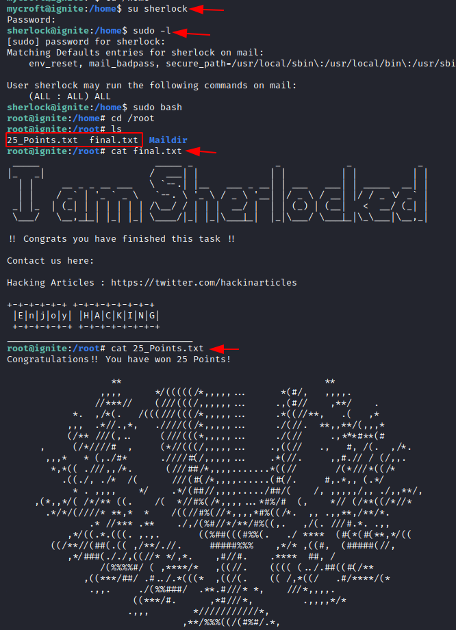 Finally, let us change the directory and list the contents within it. And there you find the last 25 points which sum up to the 100 points!!!!