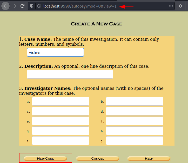 Enter the case name, investigator’s name, and create a new case.