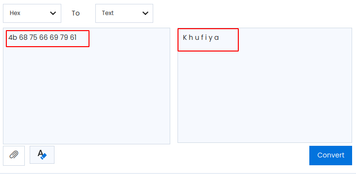 The hexadecimal value that is highlighted in light-green is selected and converted into text and we have found the text which says khufiya. Khufiya in Hindi means confidential. So we will now see how we can make use of this word.
