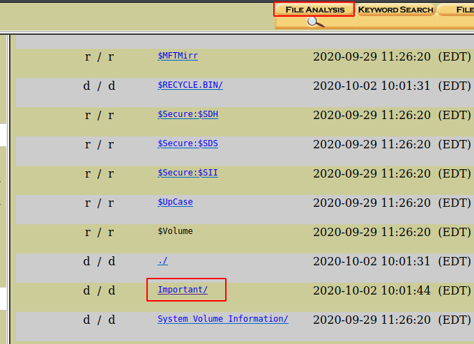 Now click on the option of file analysis and then you will be able to see a directory with the name important. Click on it to view its contents.