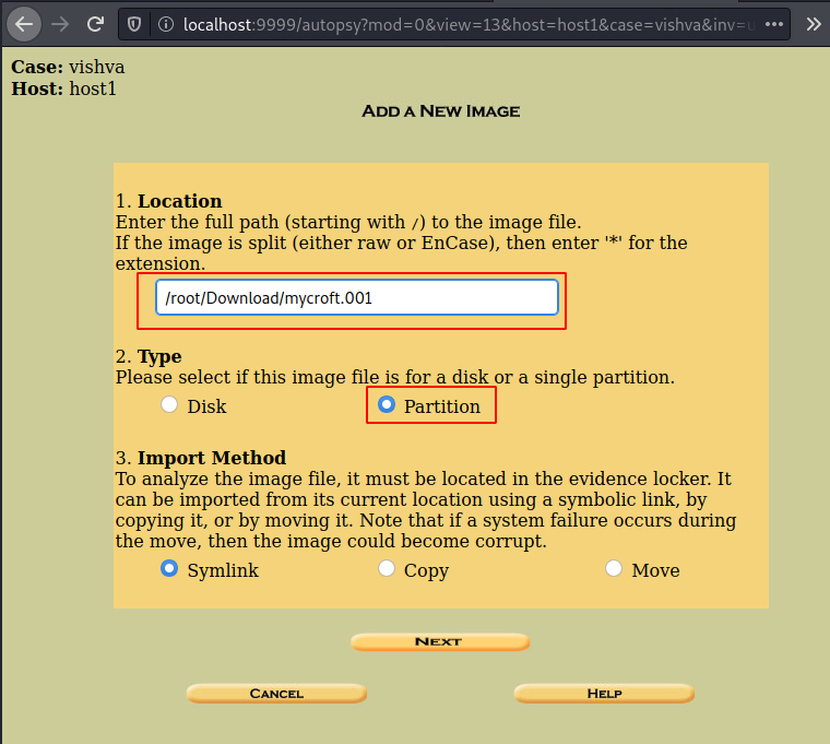 Add the location, and the additional type of image file it. As we know it’s not a complete disk image, we will go with partition and click on next.