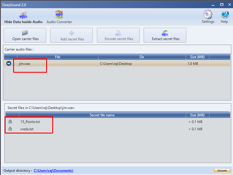 Then we can open the Deep sound and enter the password in it. And now you can see that there are two files present in the .wav. Let us download the two files and then see them one by one.