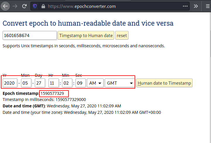 Enter the value in the Human date to timestamp converter of the epoch converter and an epoch timestamp will be generated.