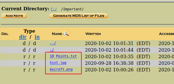 Once you have found the epoch timestamp number, you can then find the directory of the same name in the URL of the web page and there you find a file with the name 10_Points.txt and another file with john.mem. Let us open the two files.