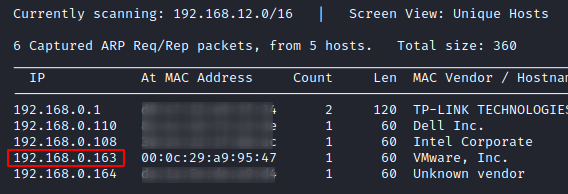 Let us begin by looking for the IP address of the machine that we need to attack, which thus can be performed using Netdiscover command. Now as when the IP addresses are being scanned, we need to understand the relation between the IP address and the MAC address. So here, we would choose the machines with Hostname, VMware. And therewith it, we get the IP address as 192.168.0.163. You can find the same with –