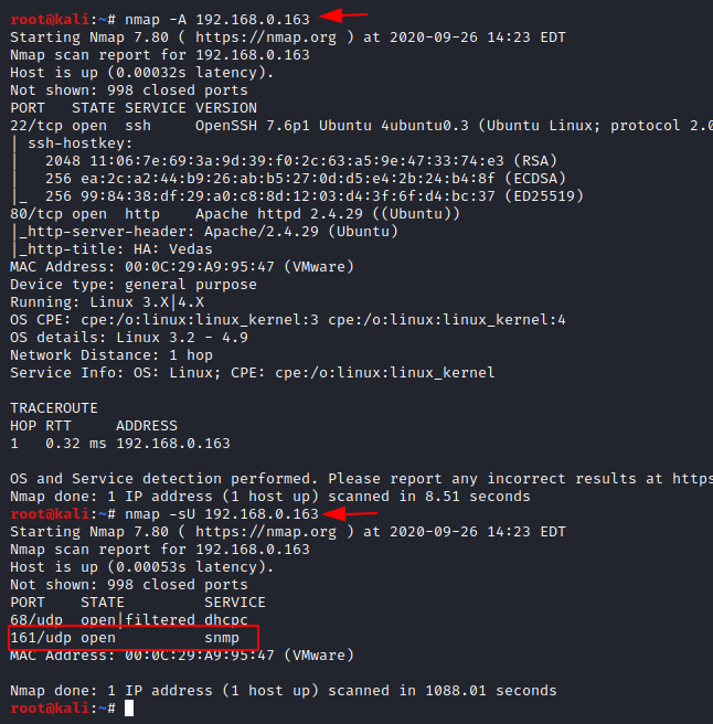 But with this Aggressive scan, let’s perform a UDP scan too. And with this, we can see that an snmp (169) service is running which can be useful for further exploitation.