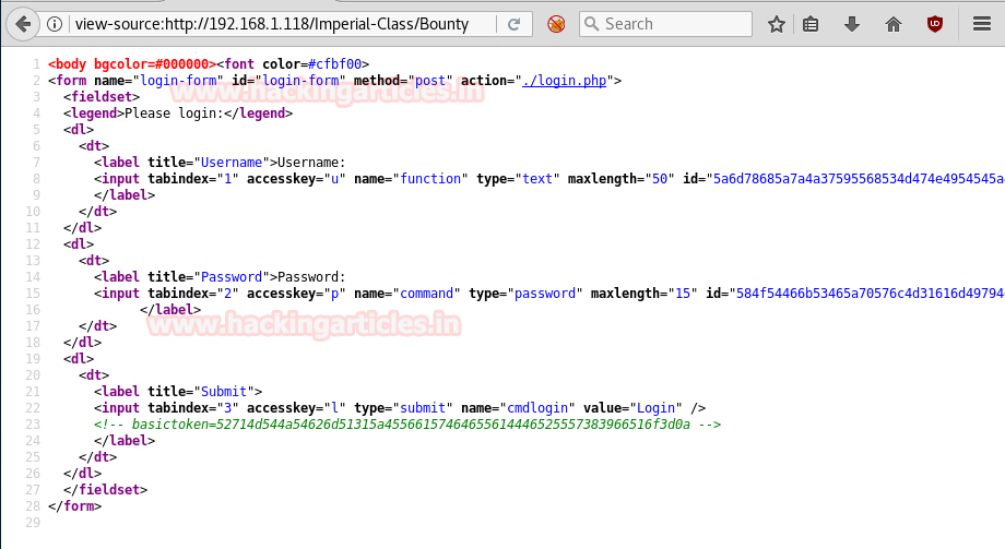 When we open this link we find a login page. When we look at the source code of the login page we find that when data is submitted a file called login.php is handling the login form. So we take a look at that page.