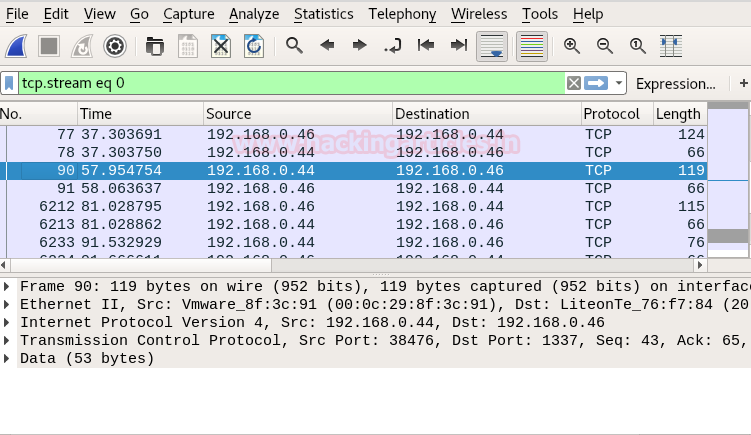 Now the file is downloaded on your desktop. I explored it every packet and found a conversation in the TCP stream of the 90th packet. Just right-click on the said packet and then click on Follow option and then select TCP stream.