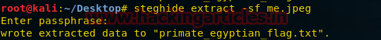 We used to exiftool on this file and found nothing so we performed steganography using steghide.