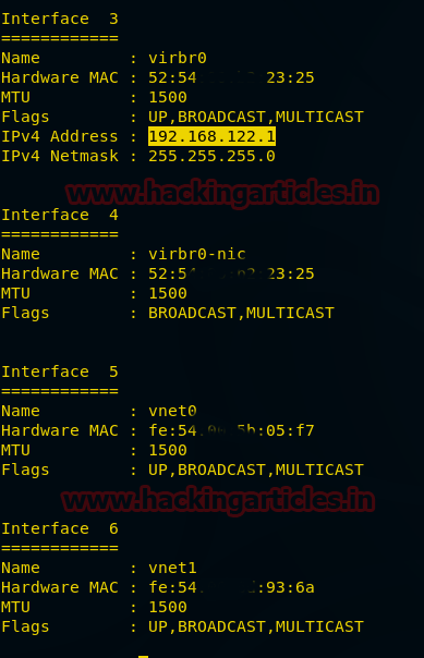 Here you can check all IP and MAC address, 192.168.122.2 and 192.168.122.3 will be another target.