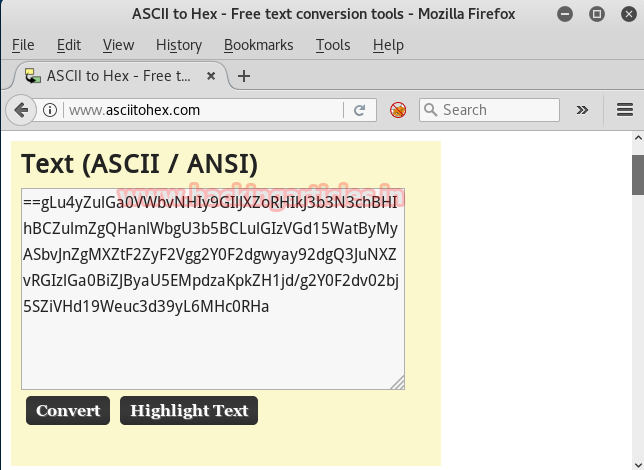 After converting the file from hexadecimal we found that the text was again encrypted in base64 format.