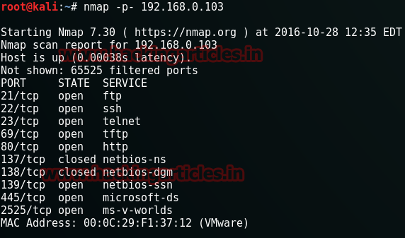 for x in 1466 67 1468 1514 1981 1986; do nmap -Pn --host_timeout 201 --max-retries 0 –p $x 192.168.0.103; done