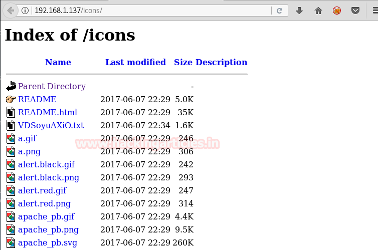 Now the dirb scan shows us directories. We open the icons/ directory and find a few files.