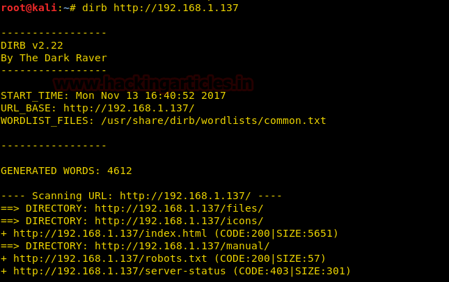 dirb http://192.168.1.137