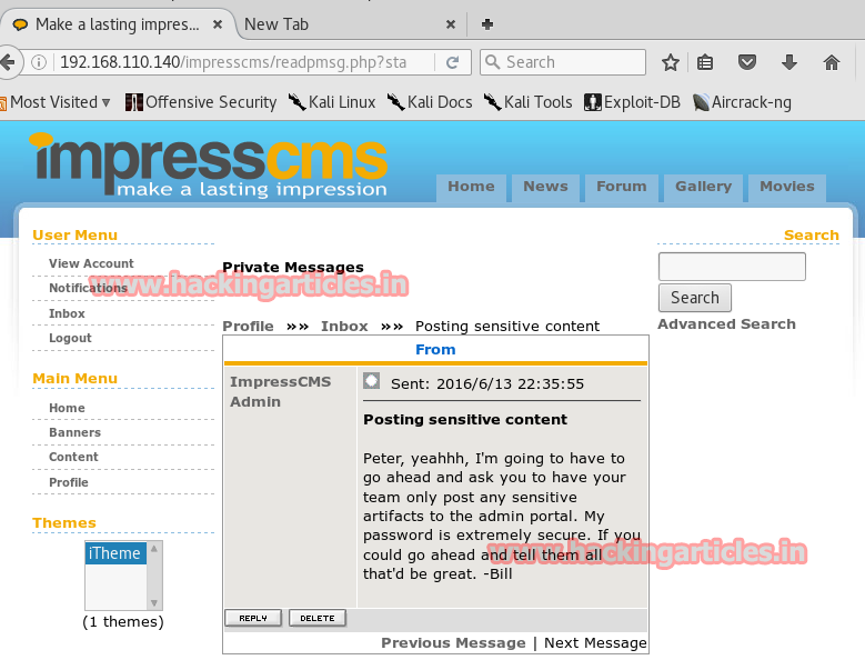 Once you are logged in, you will we that there are three messages in the inbox. Open each message one by one as we may find a clue in it.
