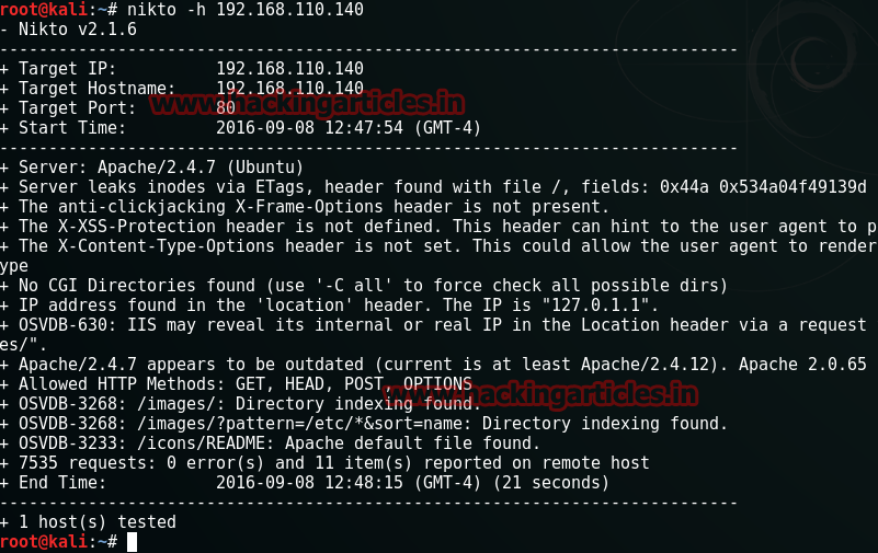nikto -h 192.168.110.140