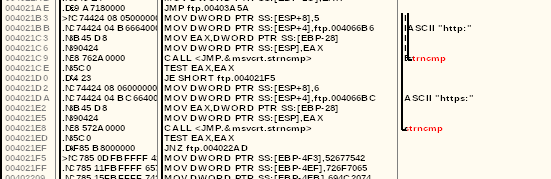 We now reverse engineer the exe file using ollydbg for more information. And find that when it reads http: it opens the link in the the browser.