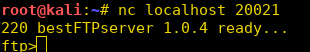 We use netcat to connect to the system and find that indeed it is an application for ftpserver.