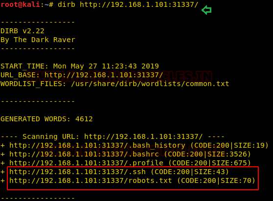 Directory enumeration using dirb shows two interesting directories “/.ssh” and “/.robots.txt”. Nmap scan has earlier shown robots.txt as well but to dig dipper we went with dirb.