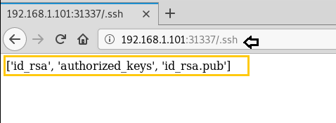 On browsing 192.168.1.101:31337/.ssh we find ssh private and public key respectively as ‘id_rsa’ and ‘id_rsa.pub’ & authorized_keys.