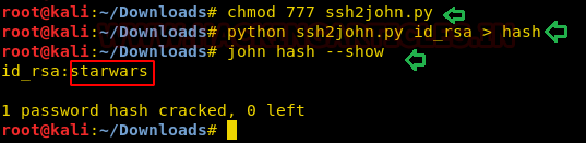 chmod 777 ssh2john.py python ssh2john.py id_rsa > hash john hash --show