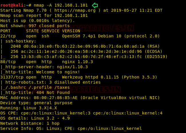 As you can see in the following screenshot that port 22, 80 and 31337 are open.