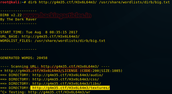 dirb http://g4m35.ctf/H3x6L64m3/ /usr/share/wordlists/dirb/big.txt