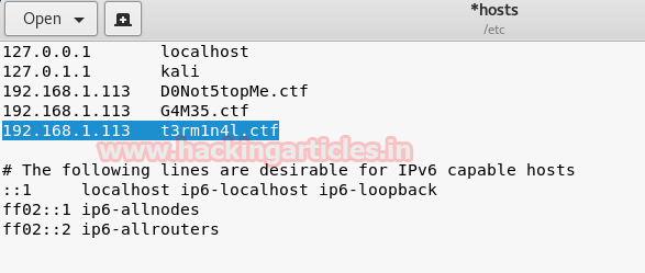 Now let’s add t3rmln4l.ctf into /etc/hosts as we did before and click on Save.
