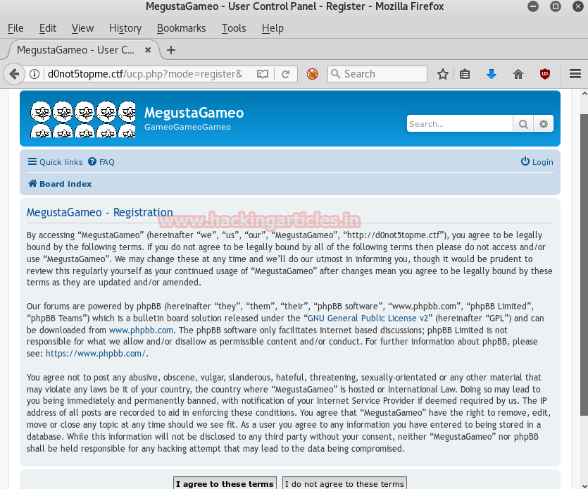 Now open donot5topme.ctf in the browser as shown and Click on Register has given at the end of the web page.