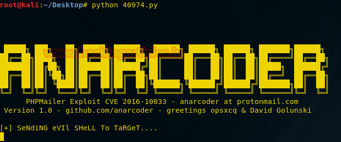 From Google, we came to known that PHPMailer 5.2.16 is vulnerable to Remote Code Execution (python) {CVE-2016-10033}. Exploiting PHPMail with the back connection (reverse shell) from the target. You can download this exploit from here.