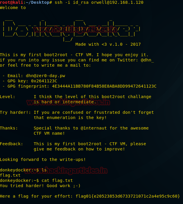 Here you will be greeted by the Donkey Docker Shell. Now check directory list for the 2nd flag