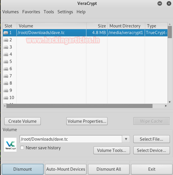 truecrack --truecrypt /root/Downloads/dave.tc -k SHA512 -w /root/Desktop/dict.txt