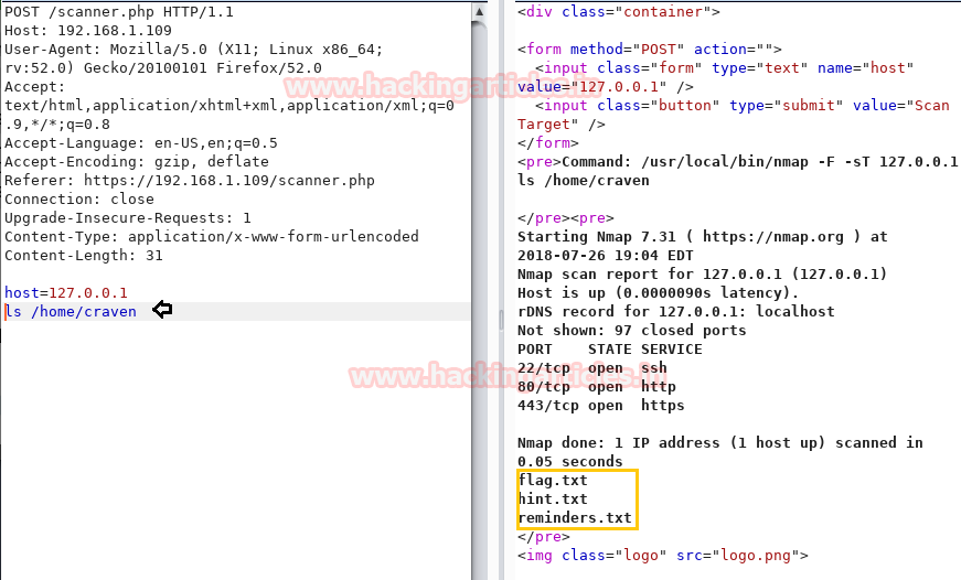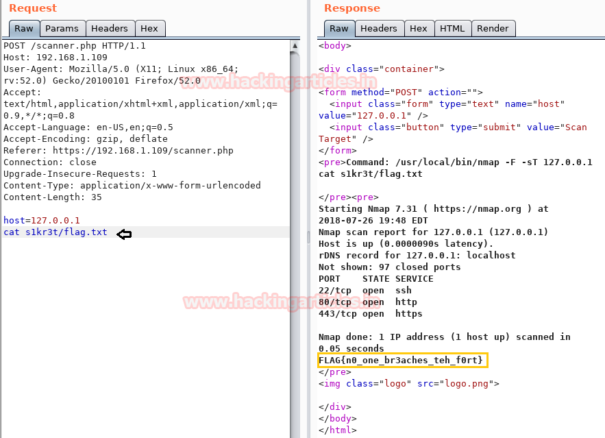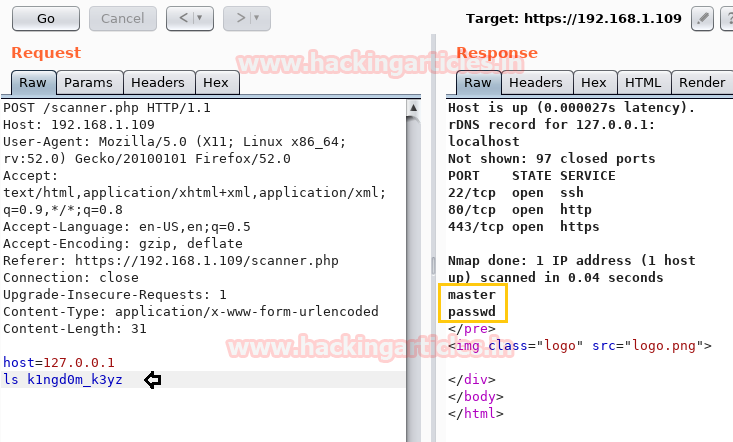 So when I explored scanner.php in the web browser, it put-up the following web page in front of us. So when I trigger the localhost IP we got the result of Nmap scan which you can perceive from below image. I also tried to breach it through some kind of command injection but hard luck! all seems to be wasted here.