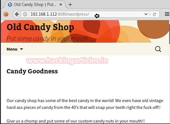 Candy goodness!!!!! It’s our WordPress page. So let’s get on to other steps by opening a WordPress login page and entering the credentials we found out i.e.