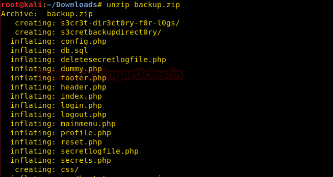 Now going through the files in the /var/www folder we find a file called backup.zip. when we try to extract it we find that it can be only extracted in tmp folder so we extract the zip file in /tmp/ folder.