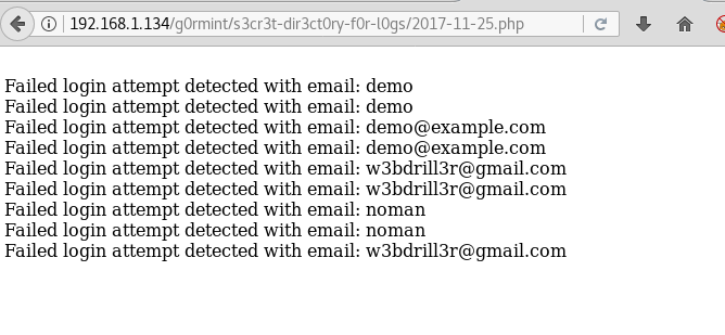 Now that we are authorized we take a look at the log file. In the config.php we find that the logs are stored in s3r3t-dir3ct0ry-f0r-l0gs/ directory in the file name format yy-mm-dd.php
