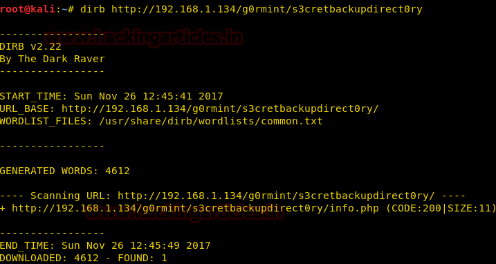 dirb http://192.168.1.134/g0rmint/s3cretbackupdirect0ry