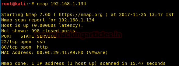 Let us start form getting to know the IP of VM (Here, I have it at 192.168.1.134 but you will have to find your own)