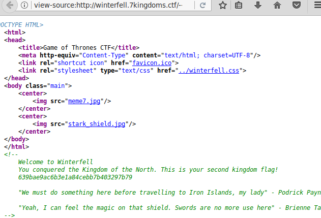 We now add the domain winterfell.7kingdoms.ctf to /etc/hosts and open the link found in the file.