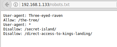 We open the directory called /direct-access-to-kings-landing/ using user-agent Three-eyed-raven.
