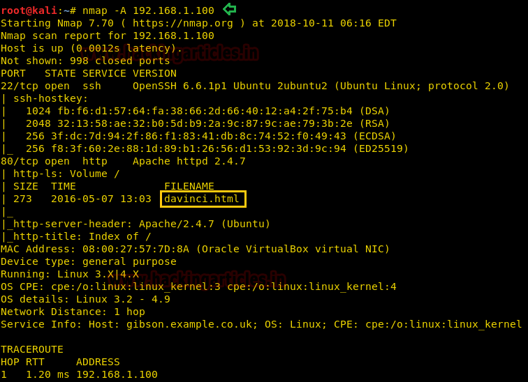 In this case, open ports are only two i.e. 22 and 80 moreover it has found an html file.