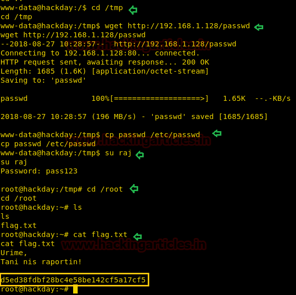 Now download the newly modify passwd file inside /tmp directory and then copy the downloaded file into /etc/passwd which will overwrite the content of the original passwd file.