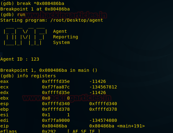 We break the program at 80486ba, and run the program. After running the programs, we look at the memory locations associated with the program.