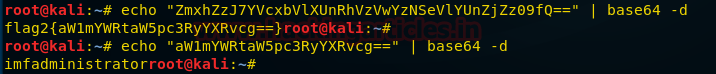 Inside the flag we find another base64 encode string, decoding it we find a string called imfadministrator.
