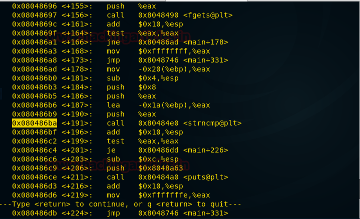We find that at memory address 80486ba, string compare function takes place so we add a break point there.